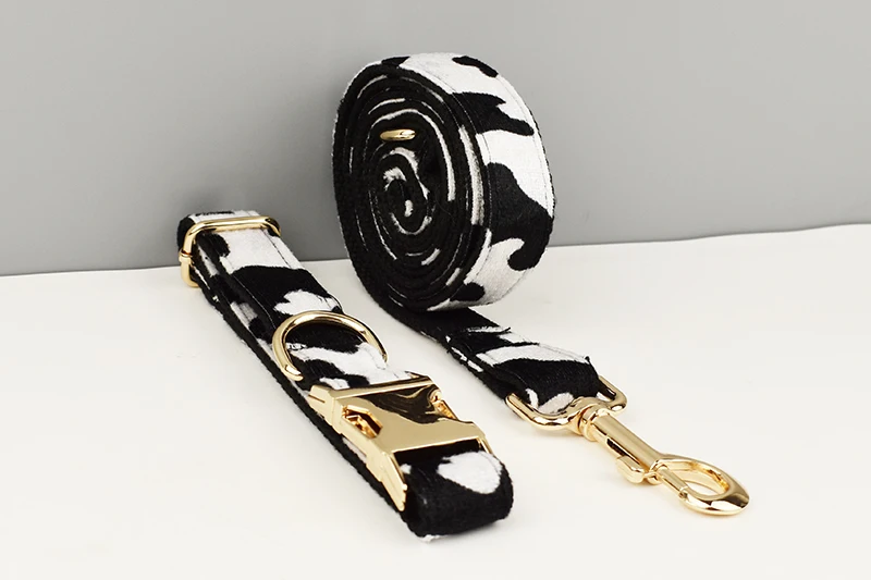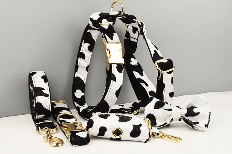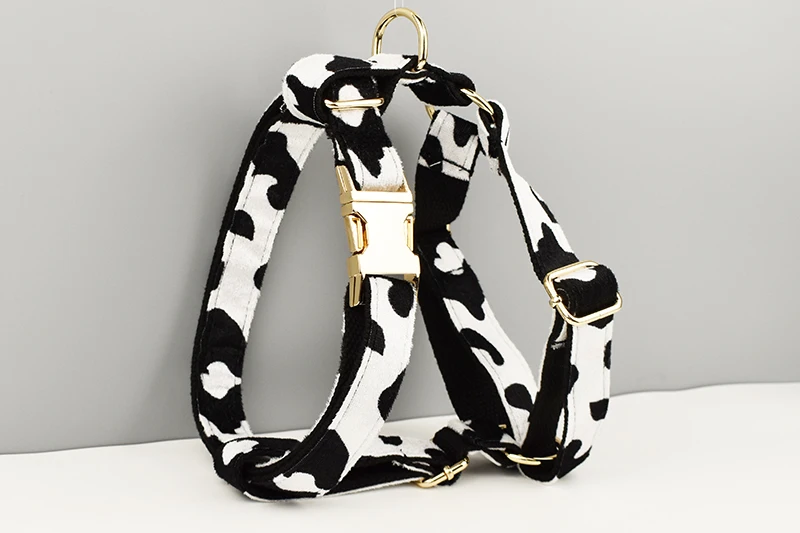 Collares tácticos de lujo personalizados para perros, juego con estampado de vaca, arnés y correa para mascotas Animal 05
